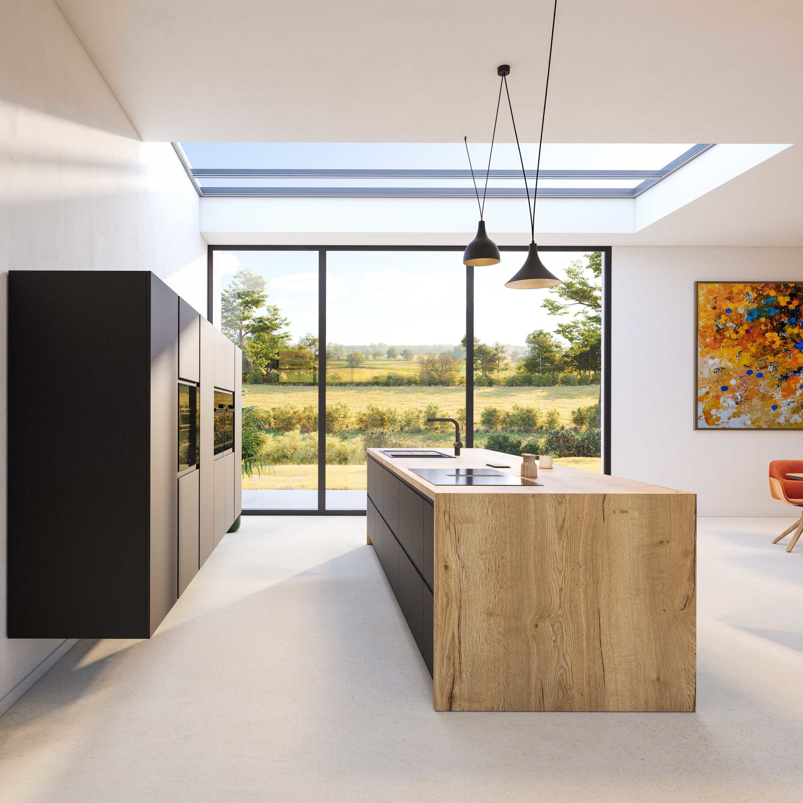 Cette cuisine incarne un équilibre subtil entre modernité et authenticité. L’association du noir profond et du bois naturel crée une composition élégante, chaleureuse et parfaitement maîtrisée, pensée pour durer dans le temps.